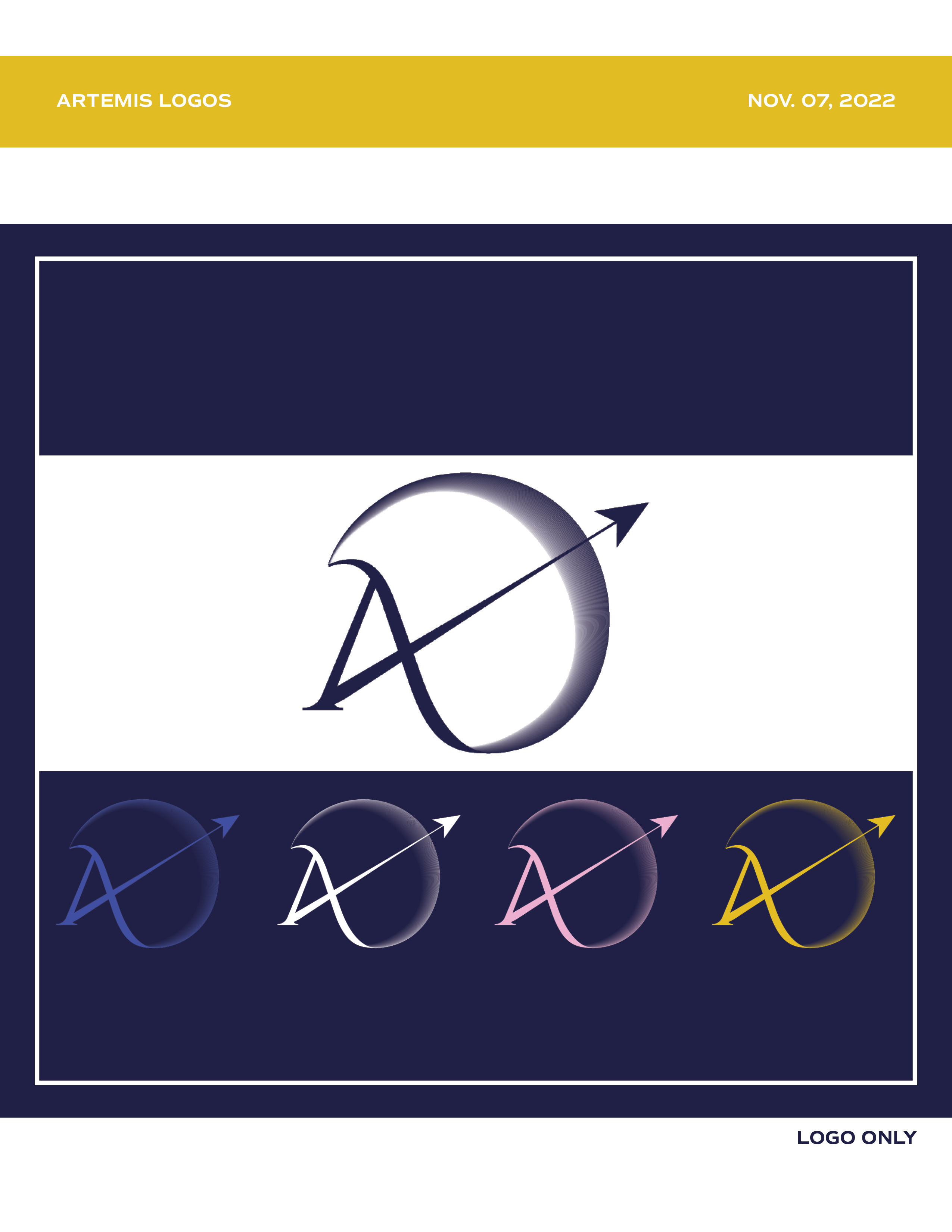 Four different variations of the Artemis were created for this project: a primary logo, the name logo, a vertical logo, and a tagline logo.