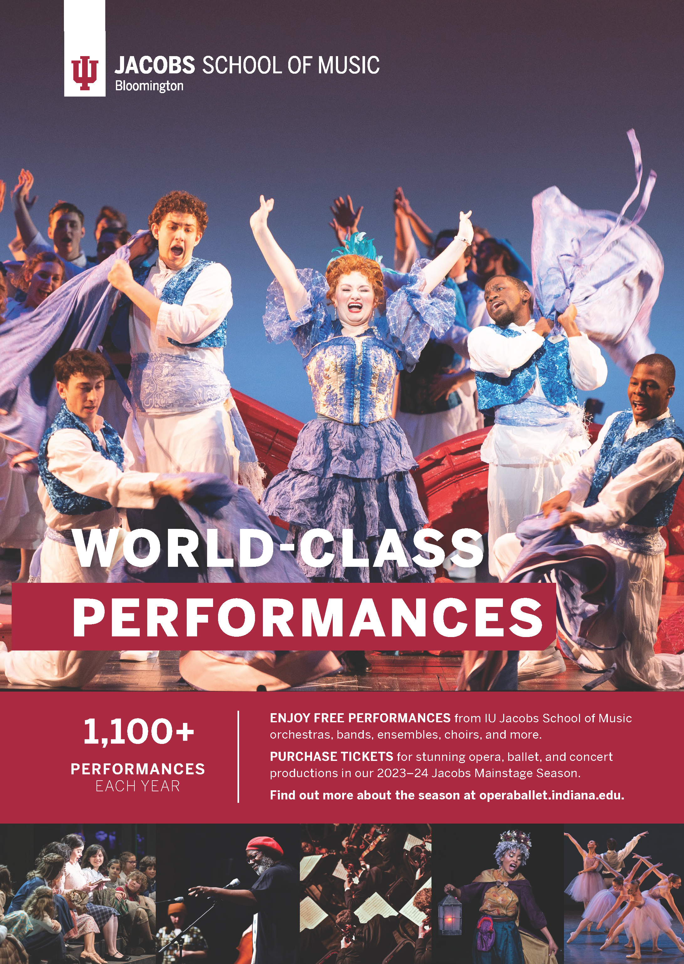 Professional poster advertisements for select events through Jacobs School of Music. This selection of advertisements features a wide variety of content created while working for Jacobs, including 11′ x 17′ prints, 1920 x 1080 digital screens, and half- and full-page magazine advertisements. Presented is only a small percentage of content created whilst employed by Jacobs.